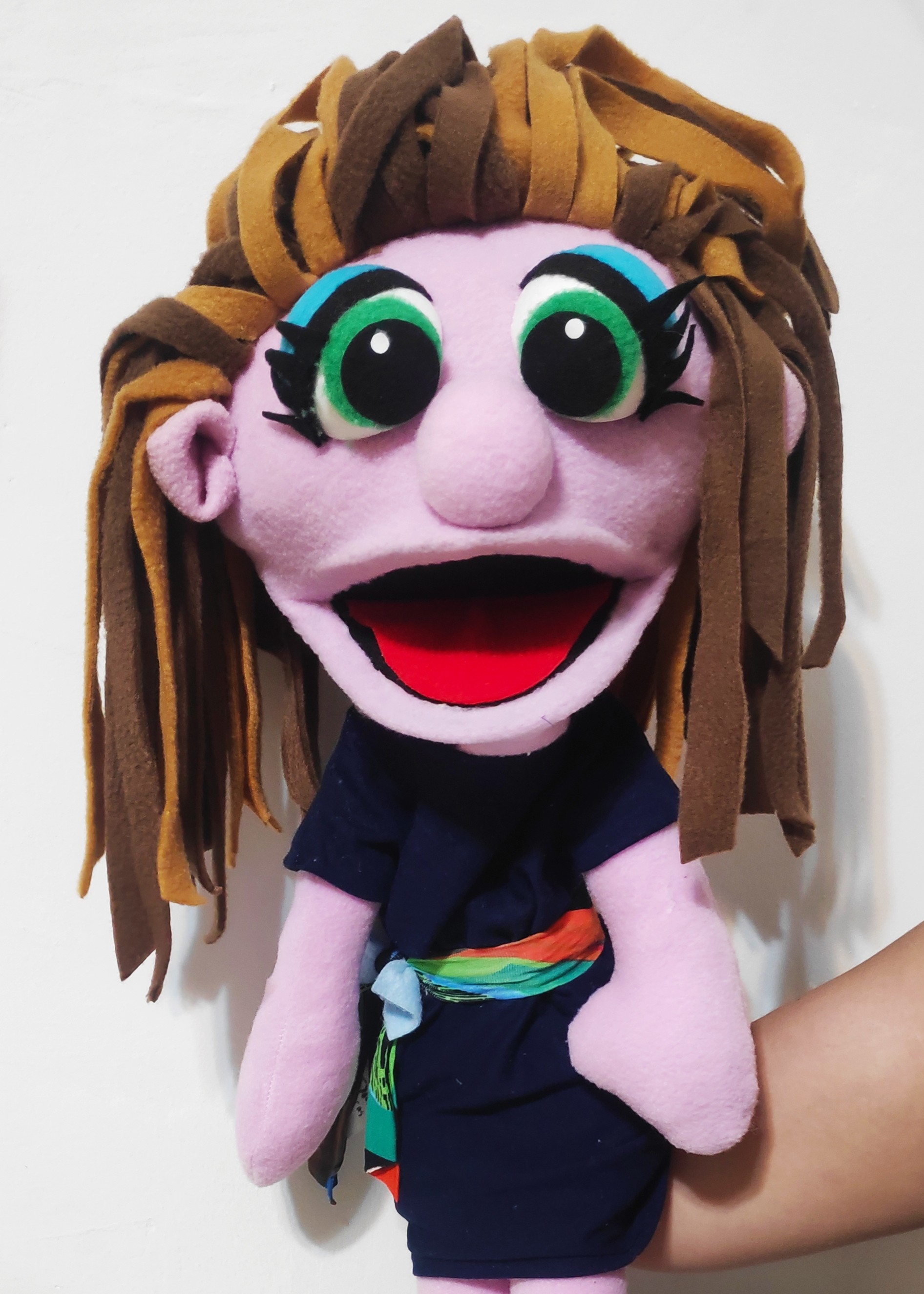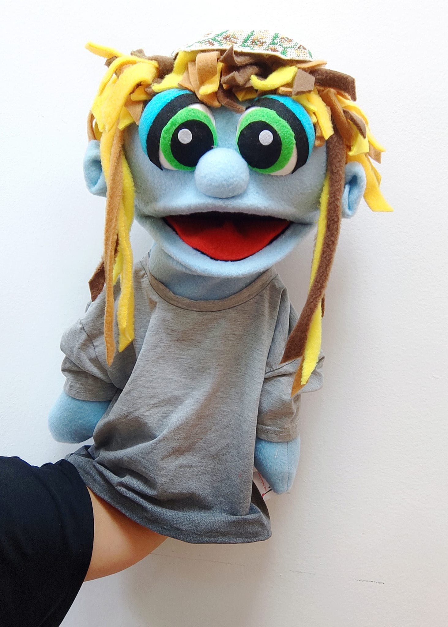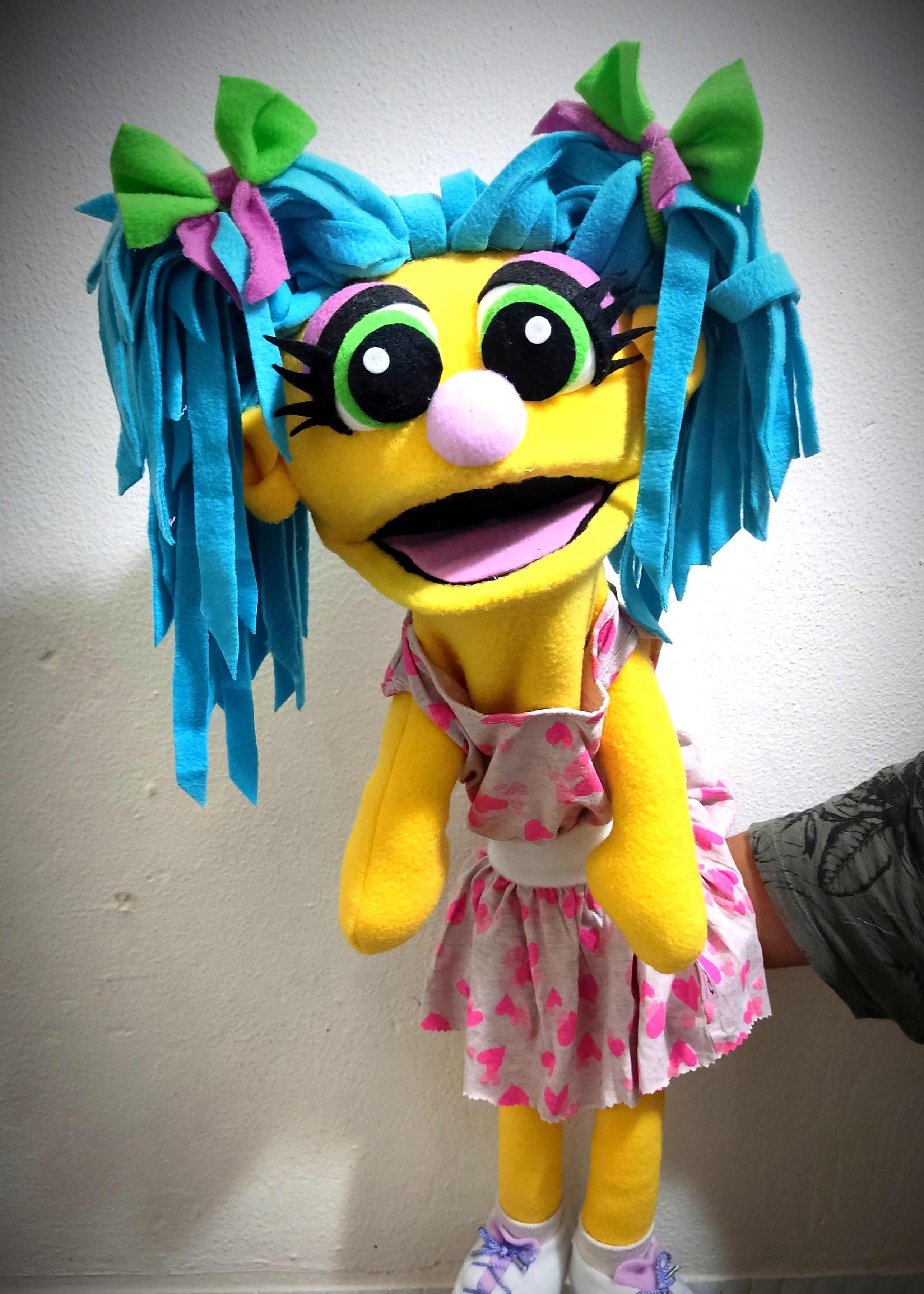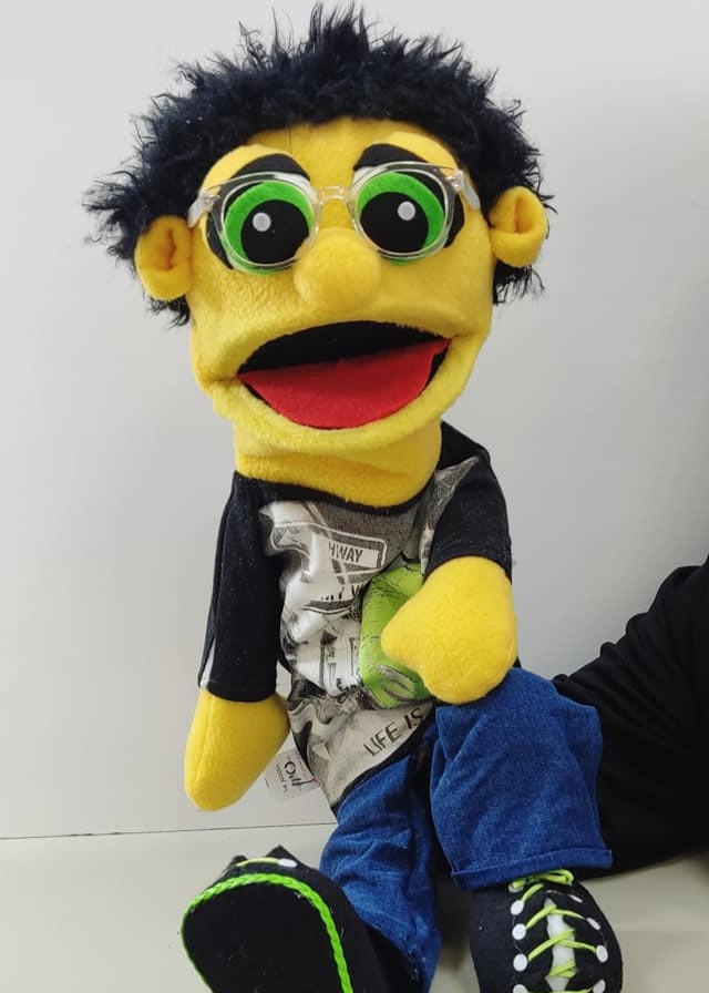 הבובה עשויה בסגנון PUPPET קלאסי – היד נכנסת מהתחתית ועד המרפק, ומניעה את הפה בקלות.