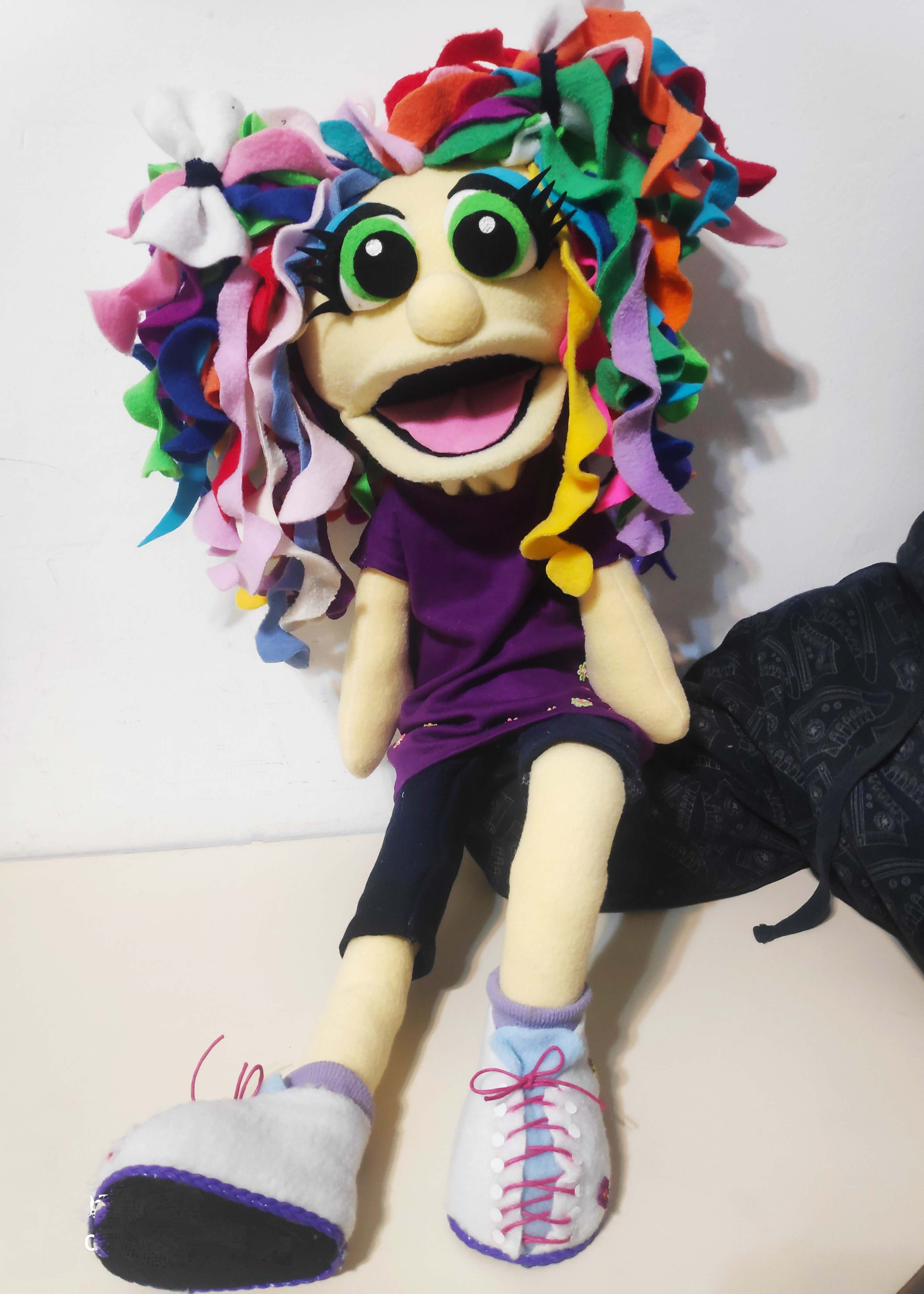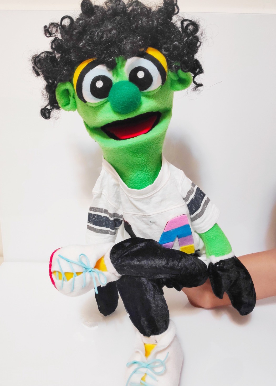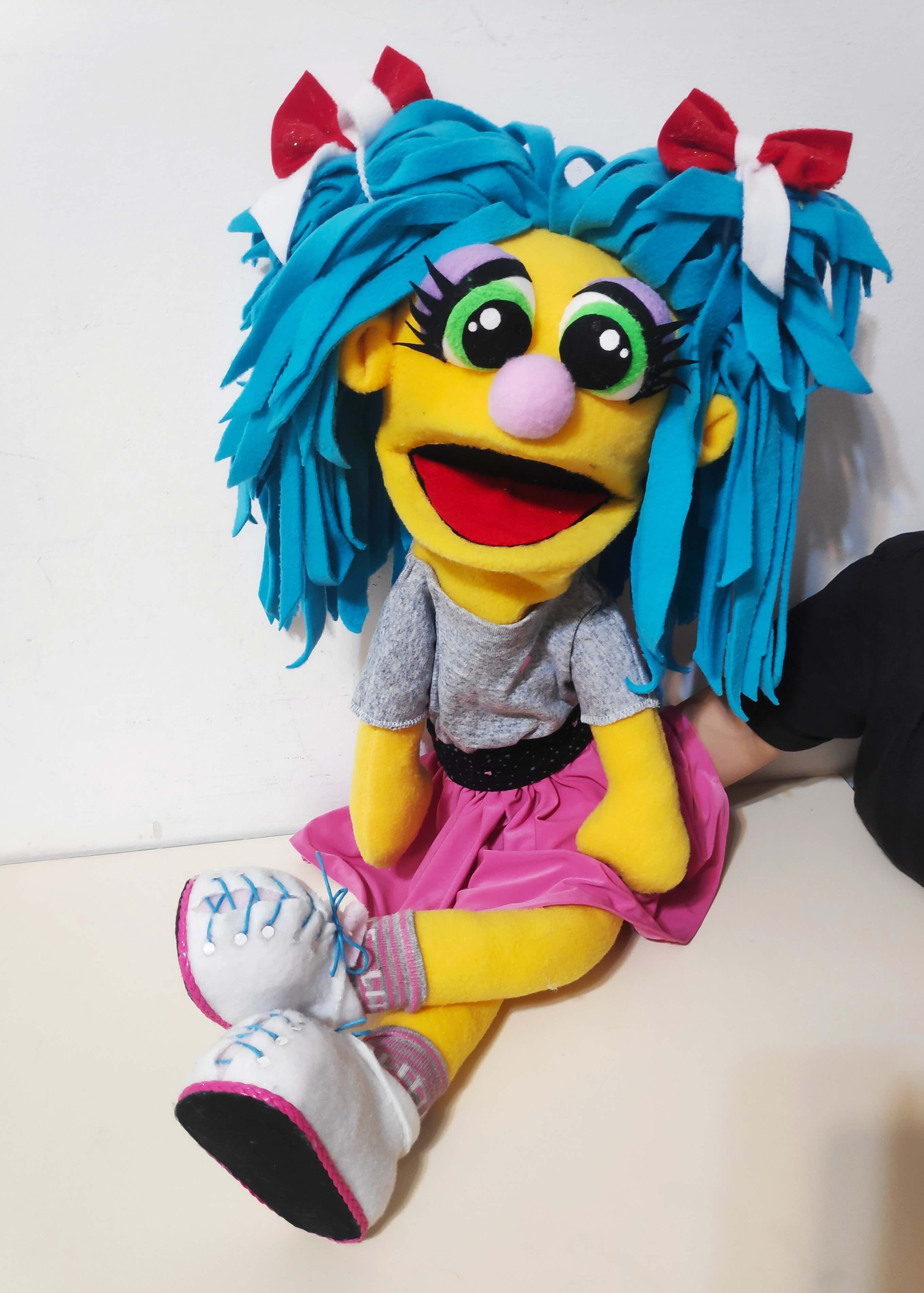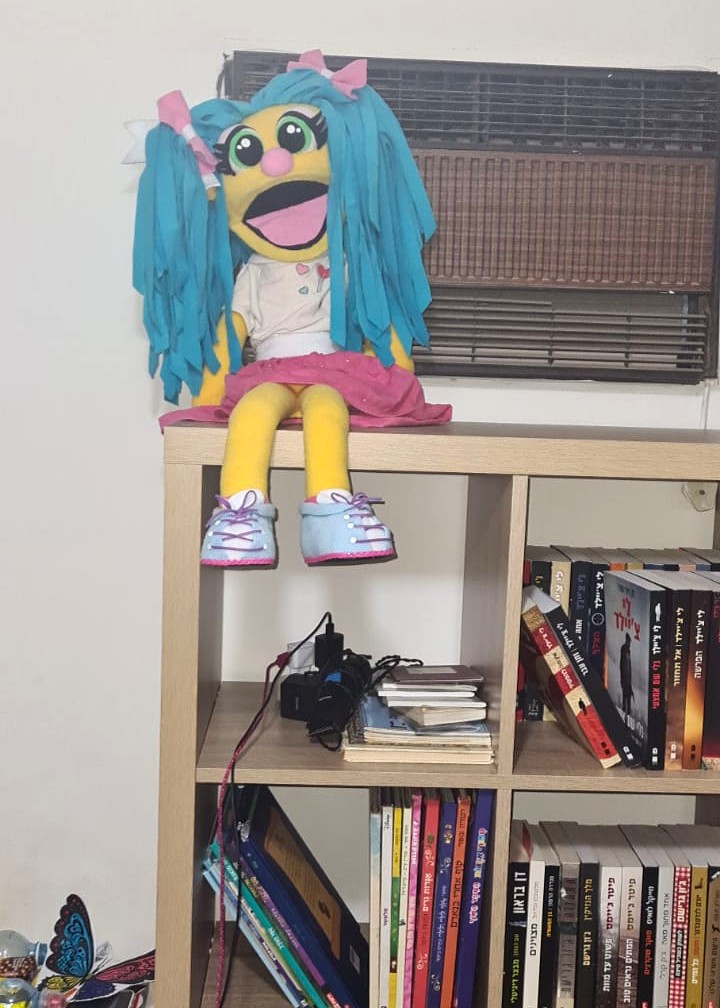 הבובה עשויה בסגנון PUPPET קלאסי – היד נכנסת מהתחתית ועד המרפק, ומניעה את הפה בקלות.