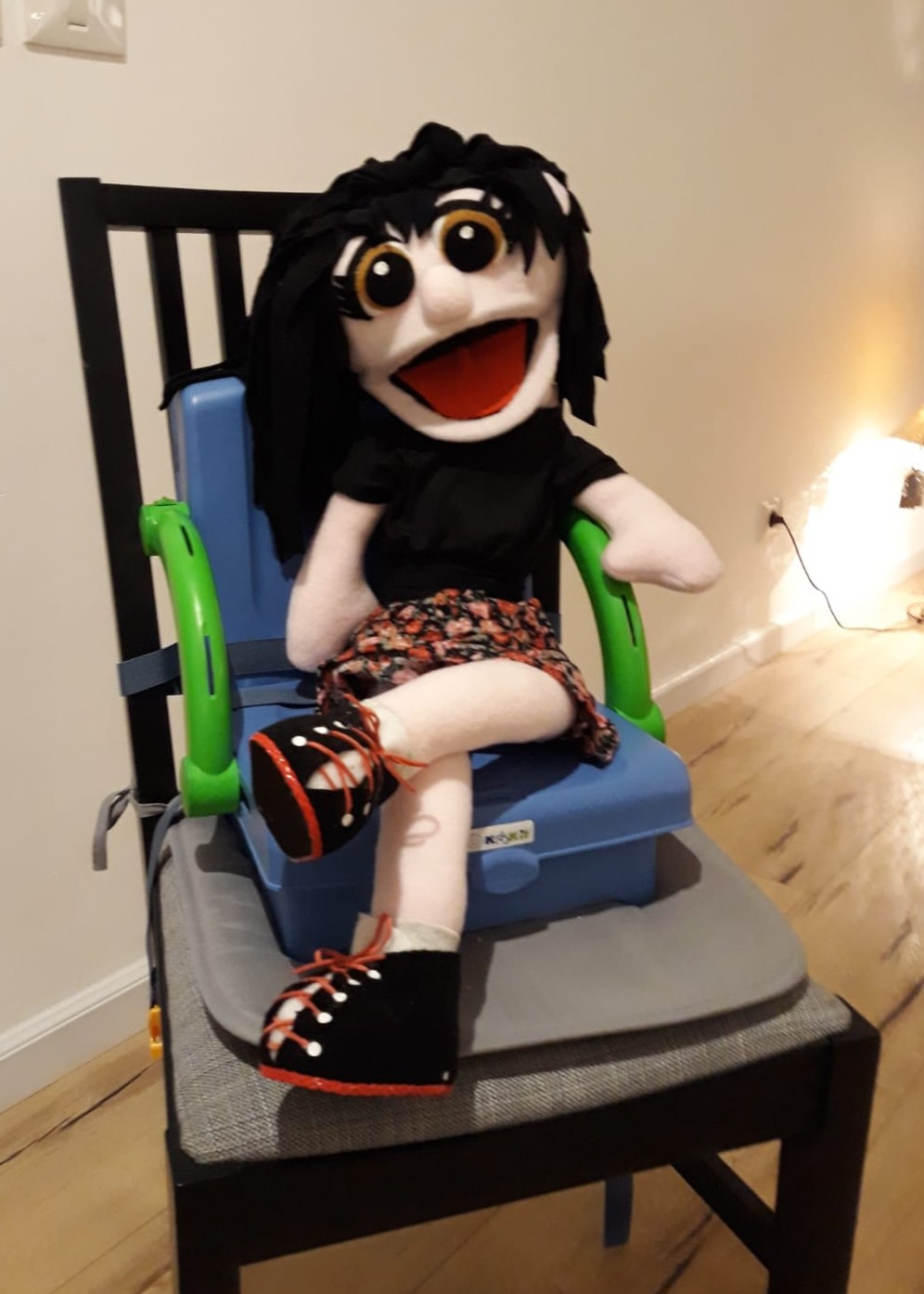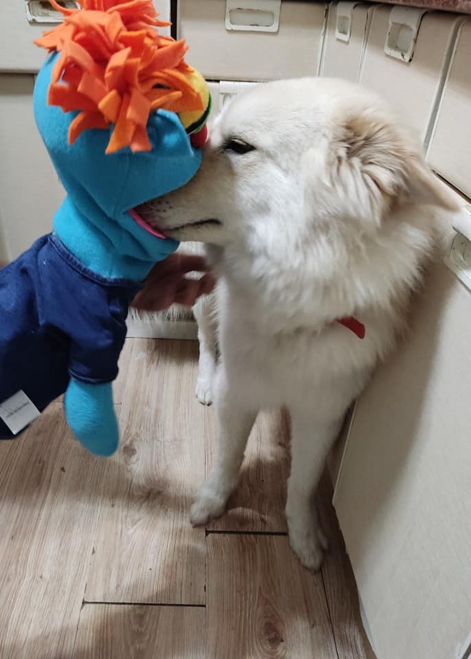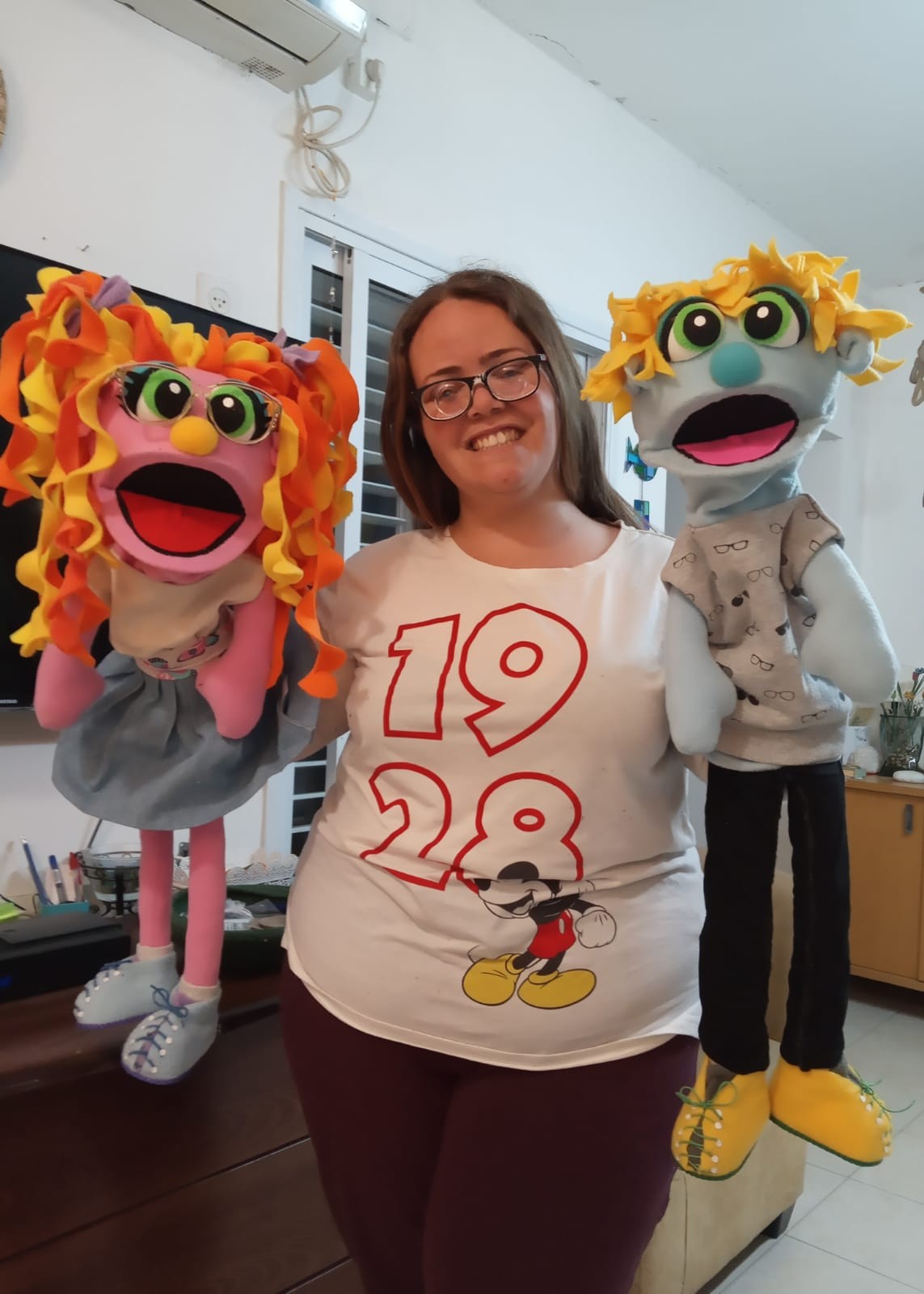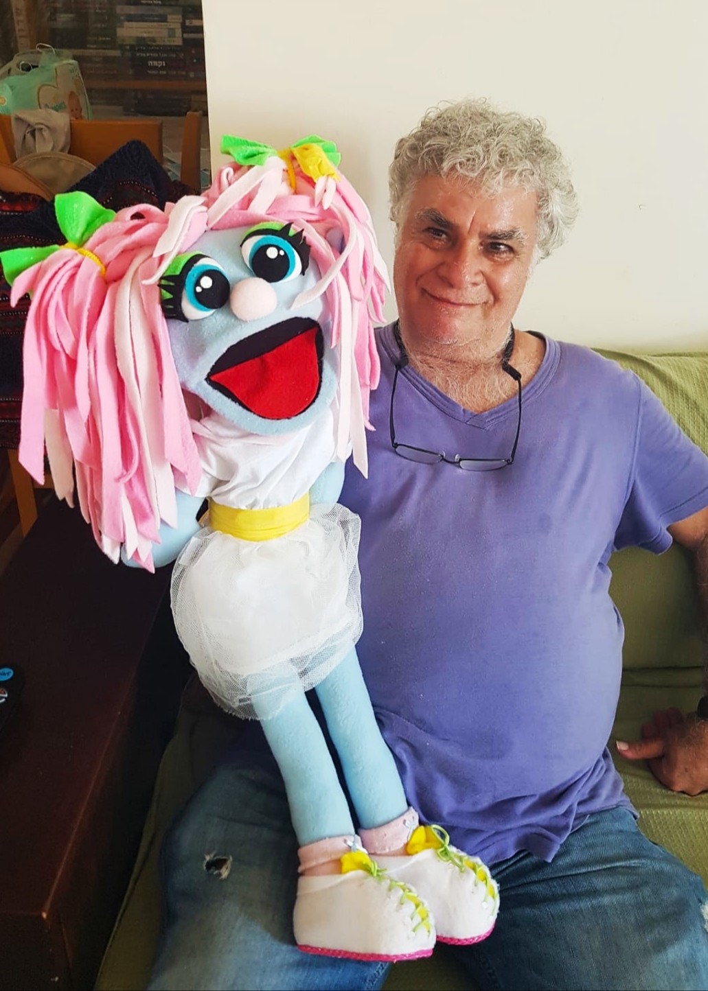 הבובה עשויה בסגנון PUPPET קלאסי – היד נכנסת מהתחתית ועד המרפק, ומניעה את הפה בקלות.