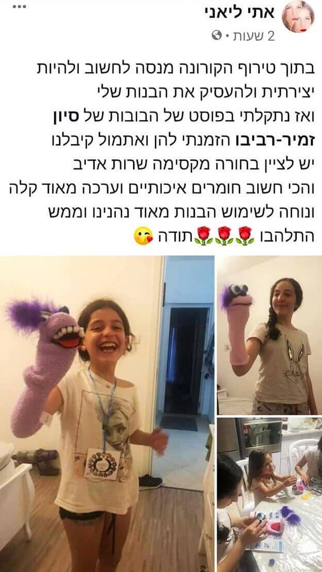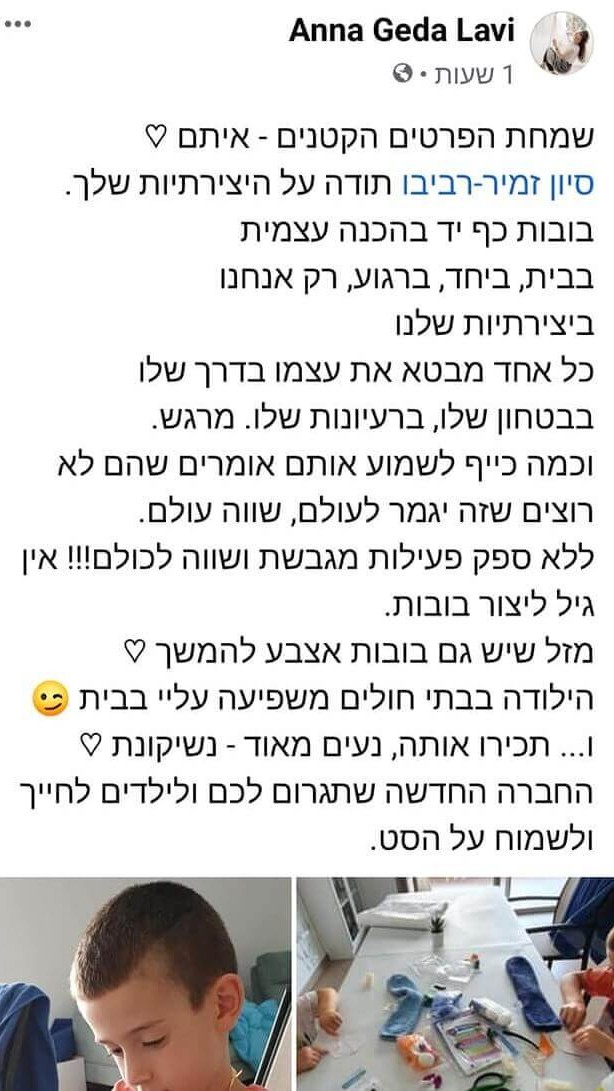 רוצה גם את.ה להכניס יצירה, בובה, או חוויה מרגשת ליום שלך? מחכה לך בערכות יצירה , סדנאות, עיצוב אישי או סתם לשיחה פתוחה, בקצב שלך – דברי איתי כאן.