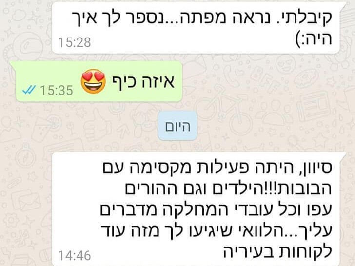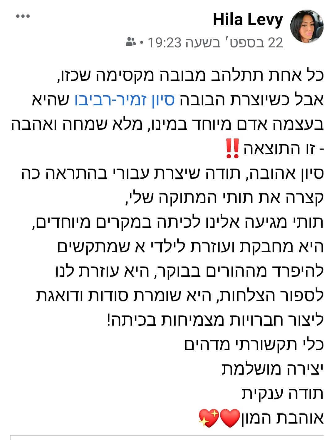 קצת מילה טובה עושה הרבה בלב – תודה לכל מי שכתב, שיתף והאיר לי את הדרך. כל המלצה כאן מרגשת אותי מחדש ומזכירה לי למה אני עושה את מה שאני עושה.